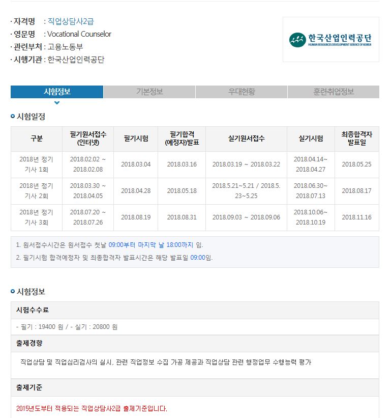 직업상담사 2급 접수일정 (한국산업인력공단)