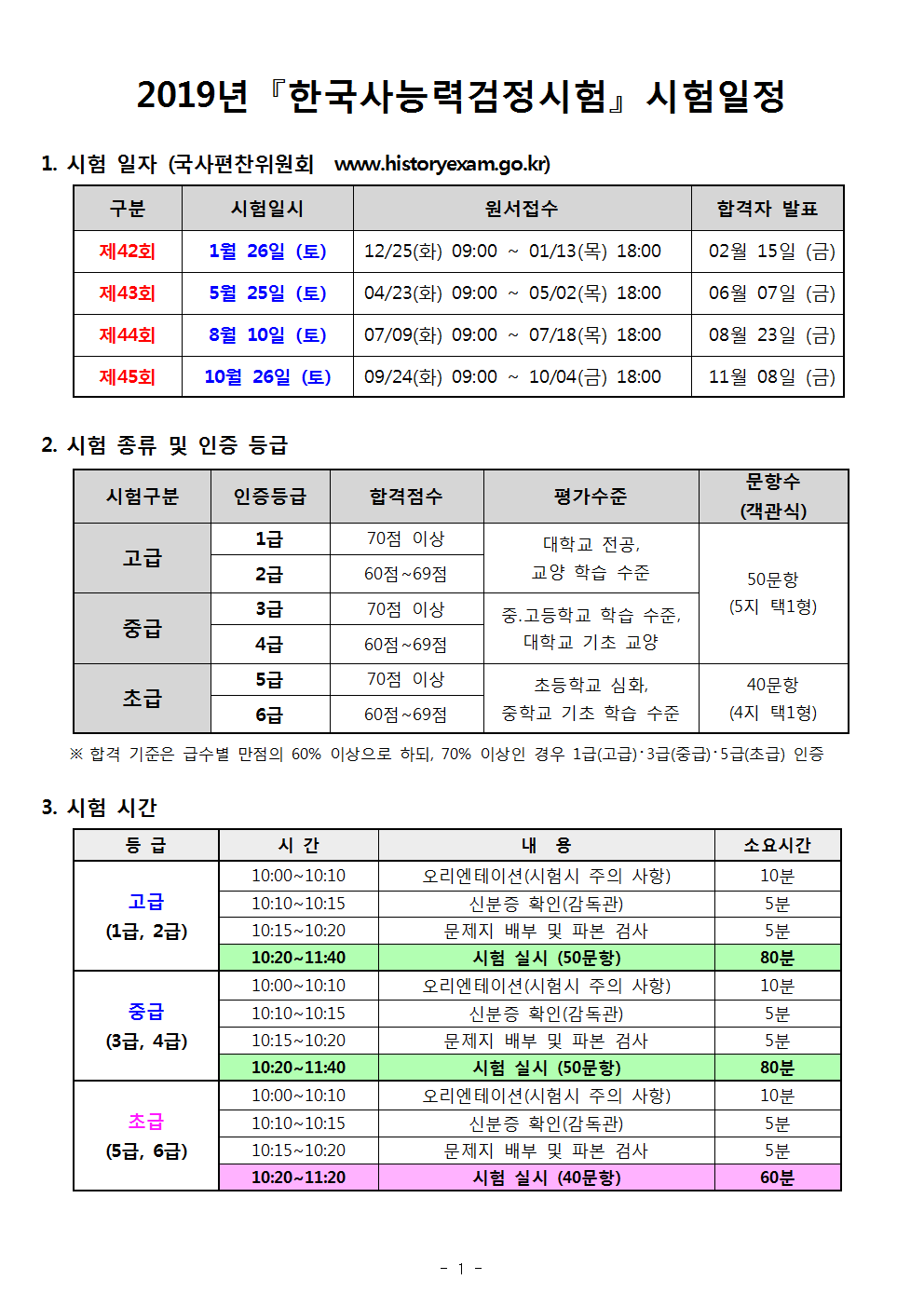 2-1. 2019년 한국사능력검정 시험일정 001