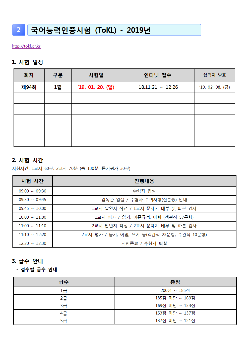 4. 2019년 한국어능력(KBS, ToKL) 시험일정003