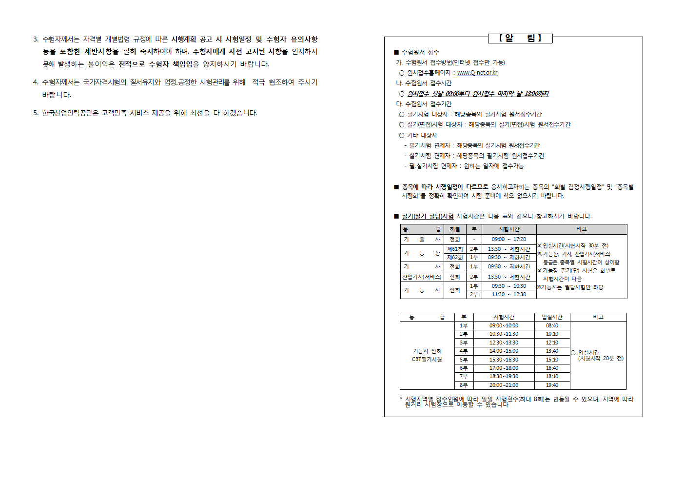 시험공고 및 수험가동향