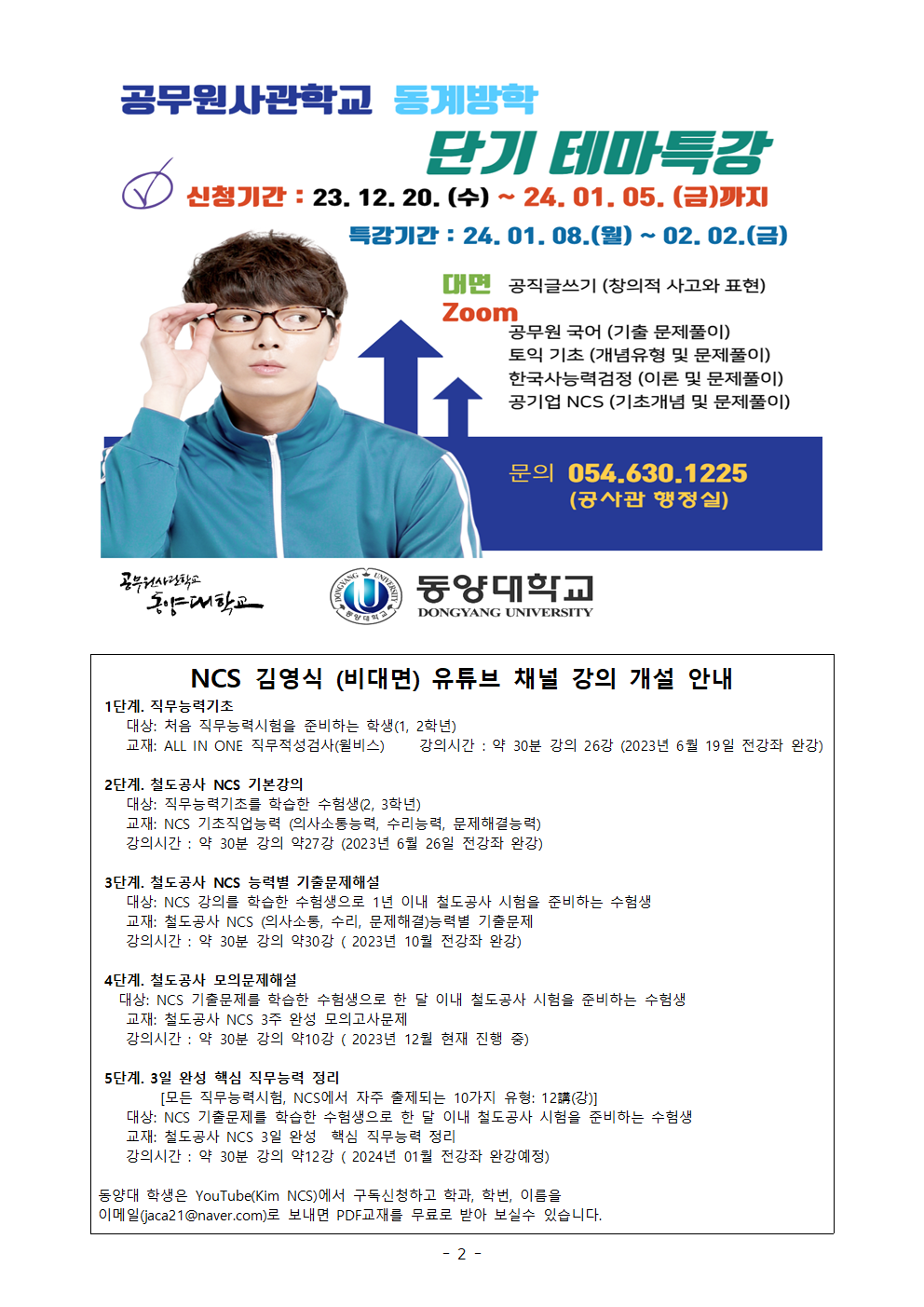 (공지용) 2023학년도 공무원사관학교 동계방학 단기 테마특강 안내002 (01.05)