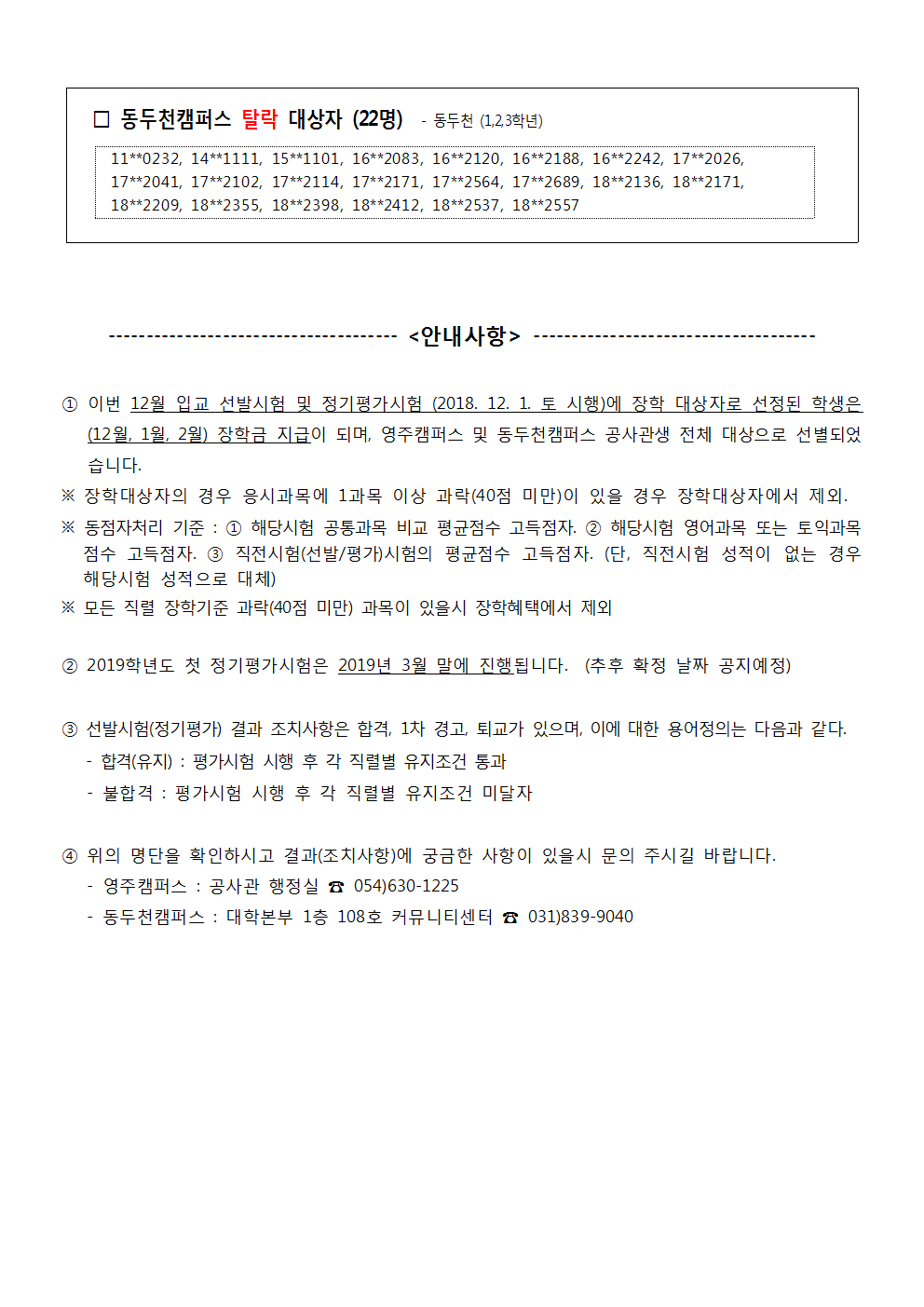 (공지) 12월 선발시험 및 정기평가 결과(조치사항) 안내002