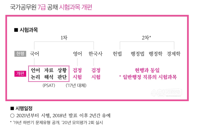 국가공무원(7급) 공채 시험과목 개편 _ 2021년