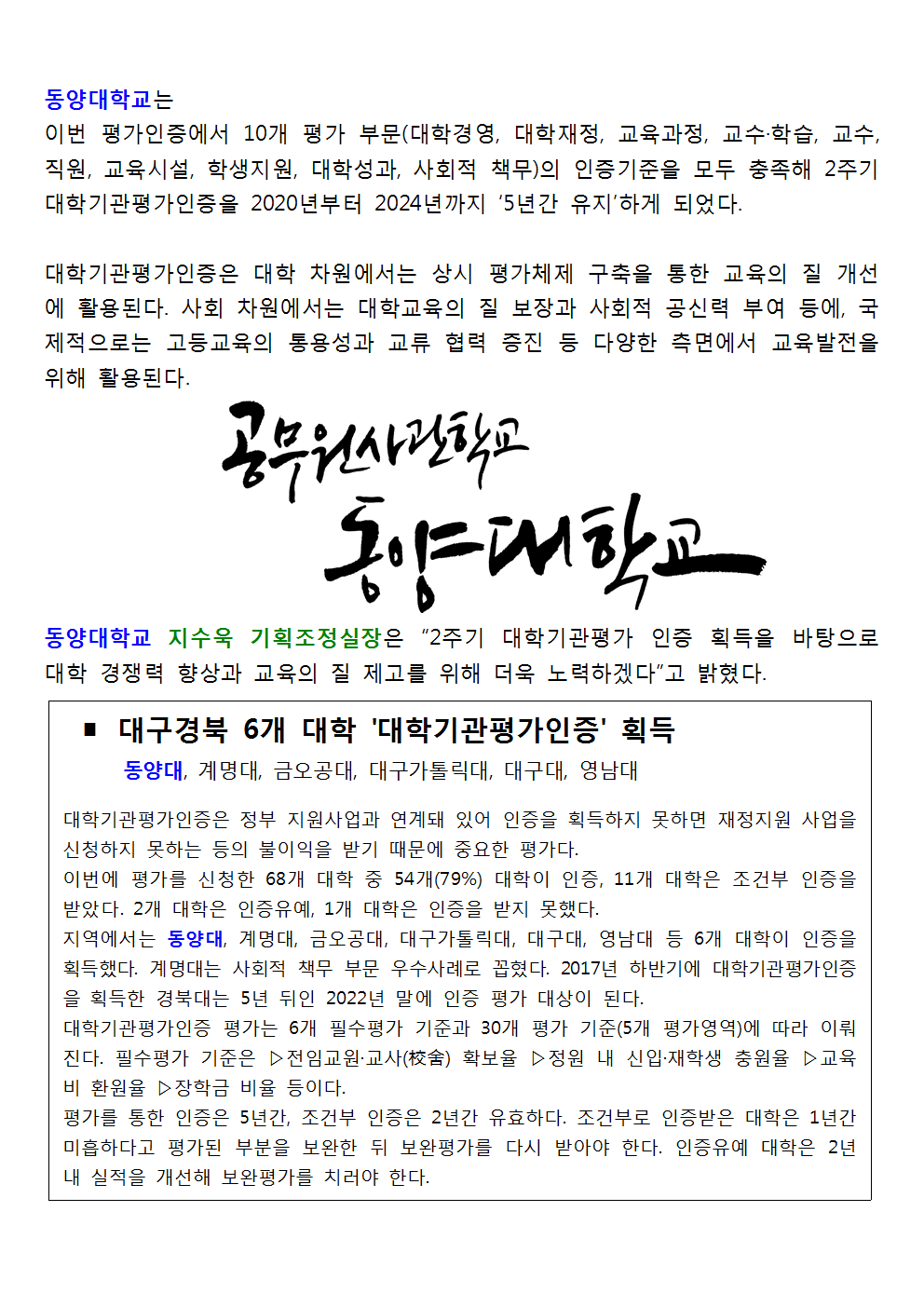 동양대, 2019년 대학기관평가 `인증` 획득002
