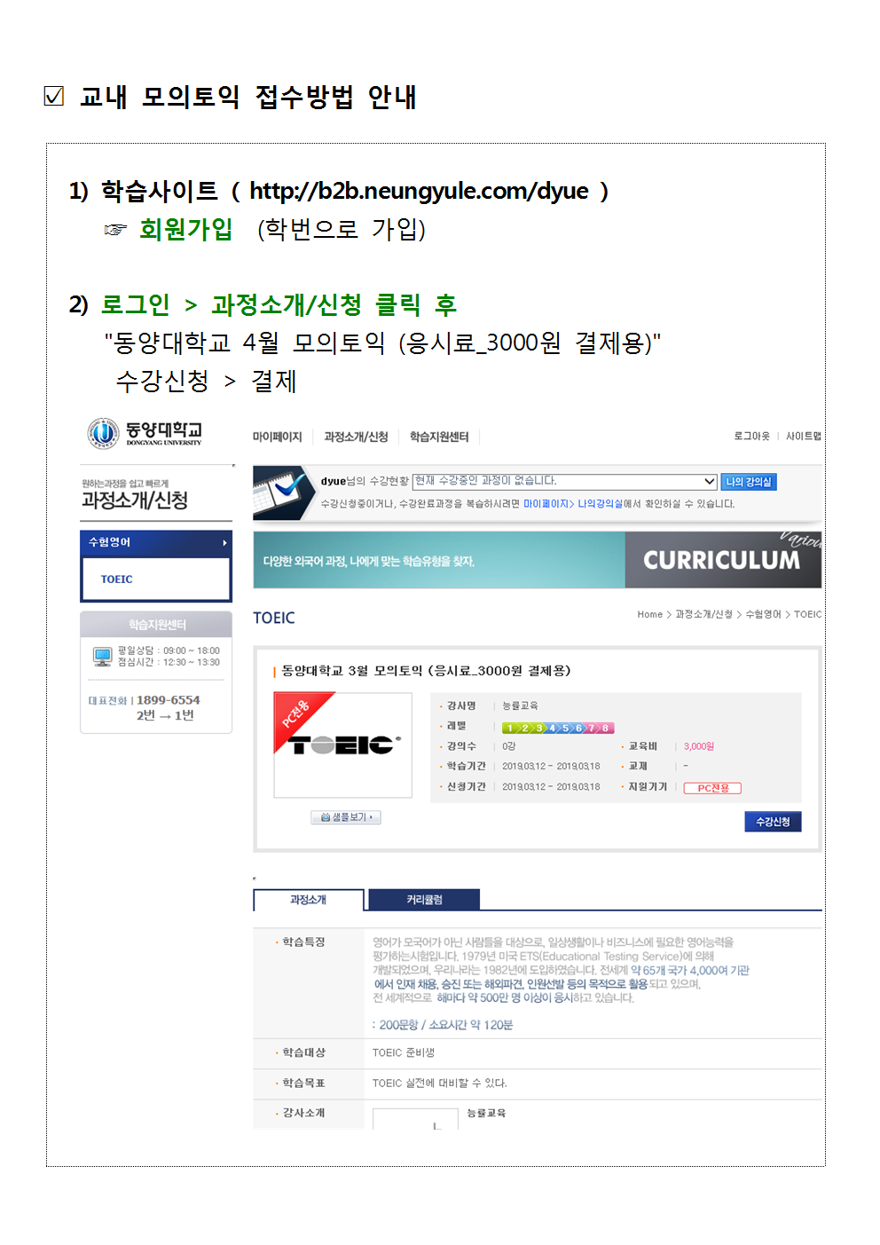 (안내문) 2019-1학기 동두천캠퍼스 교내 모의토익 시험일정002