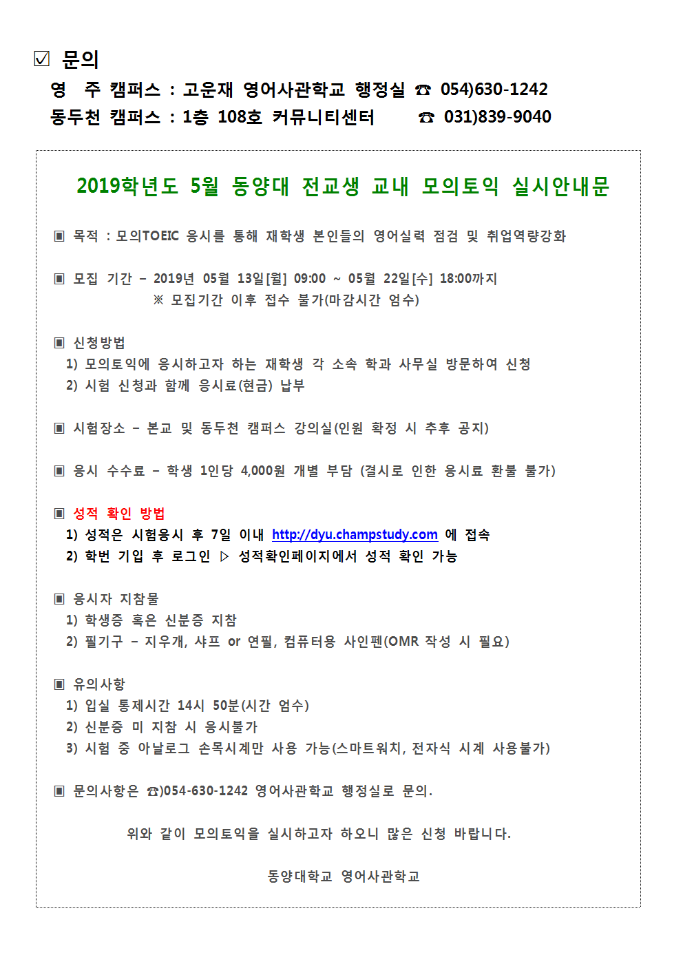 (안내문) 5월 모의토익 시험안내 (영주, 동두천)002