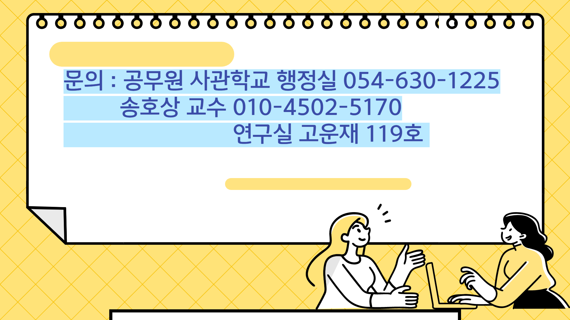 연락처 : 영주 ☎ 054)630-1225, 동두천 ☎ 031)839-9040   위치 : (영주) 경북 영주시 풍기읍 동양대로 145 공무원사관학교(H동), (동두천) 경기도 동두천시 평화로 2741 학생지원센터