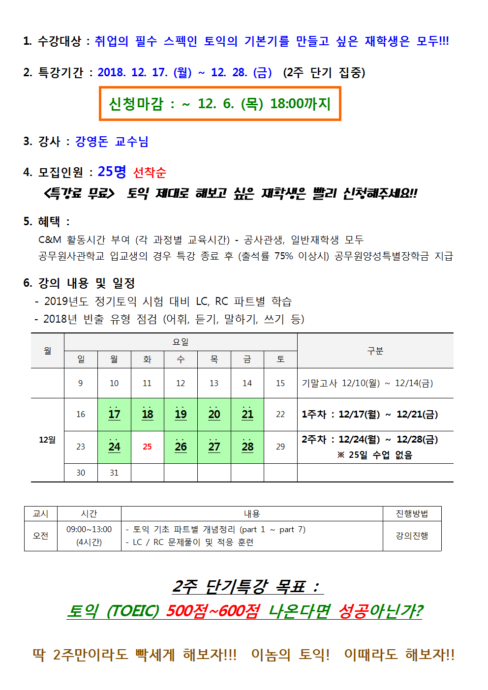 (영주캠퍼스) 공무원사관학교 동계방학 특강(2주) _ 토익002