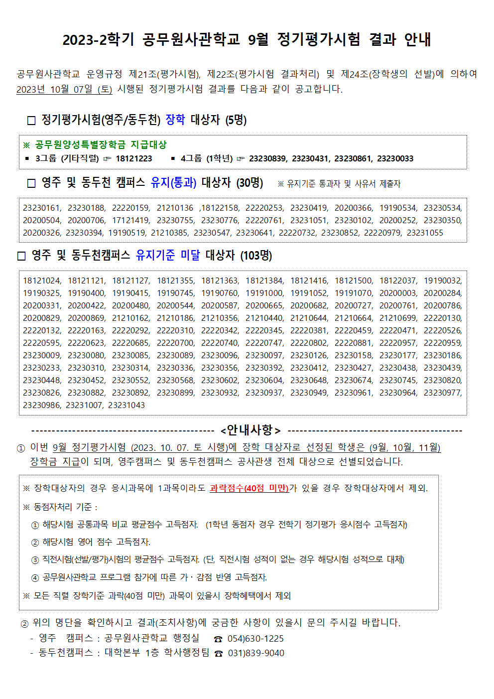 [홈페이지 공지] 공무원사관학교 9월 정기평가시험 조치사항001