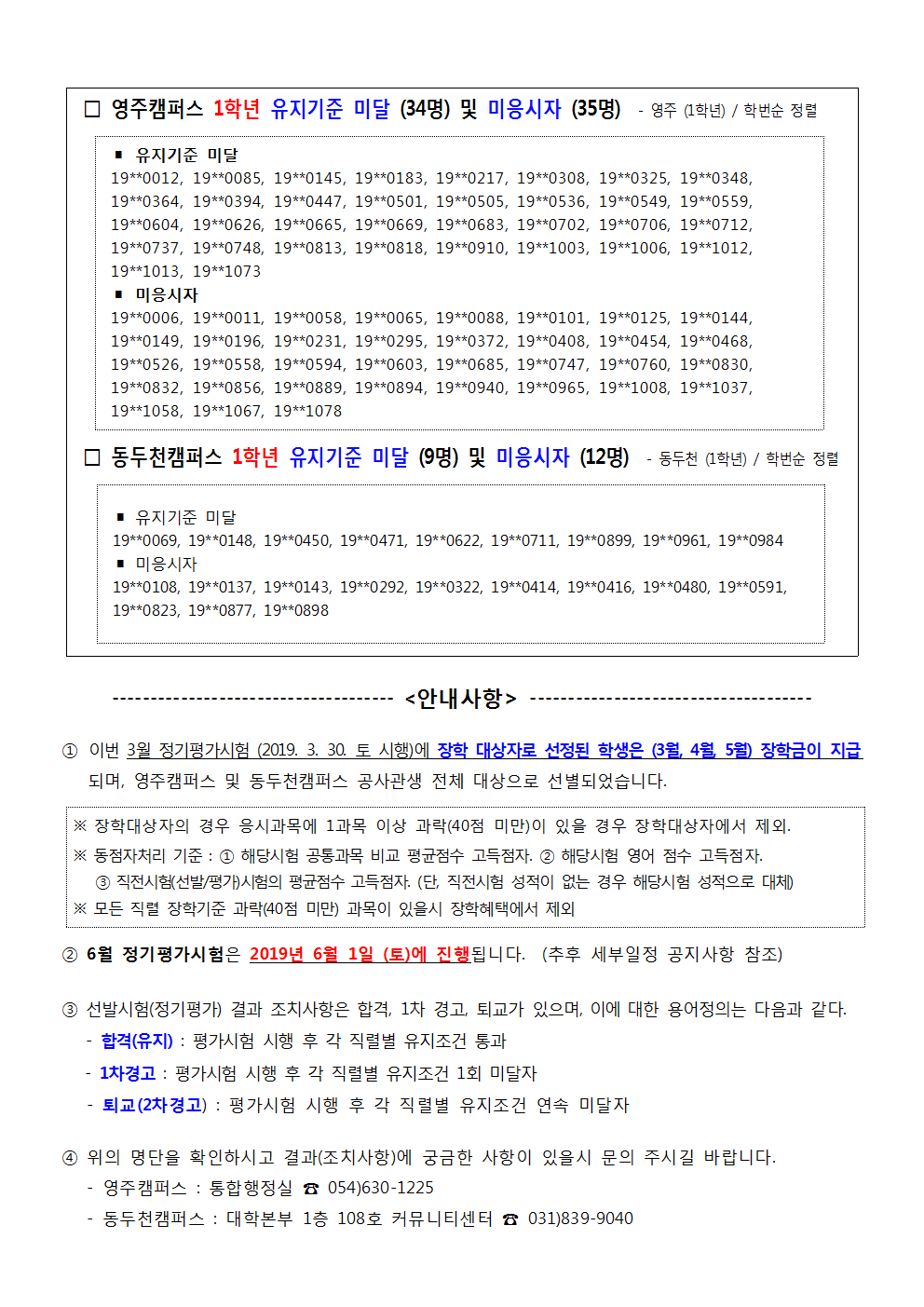 (홈페이지 공지) 2019-1학기 공무원사관학교 3월 정기평가시험 결과(조치사항) 안내 002