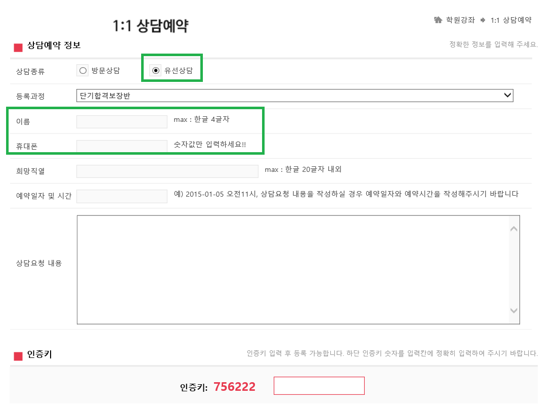 1-1 상담예약(전화)