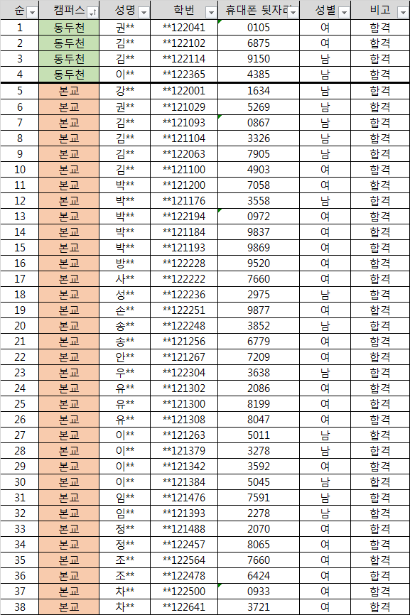 2018-2학기 학부장 추천 입교생 합격자 명단