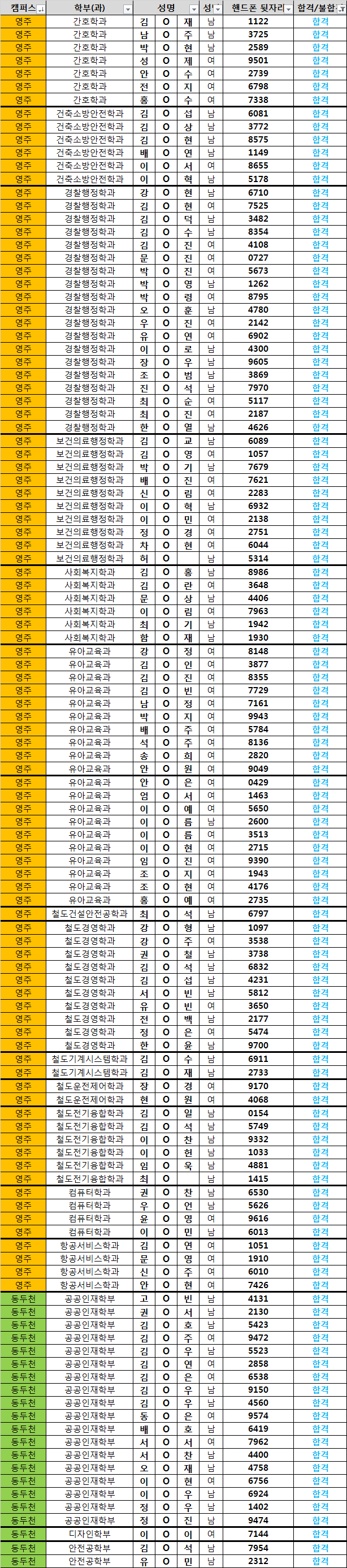 2019-1학기 학과장 추천 합격생 명단