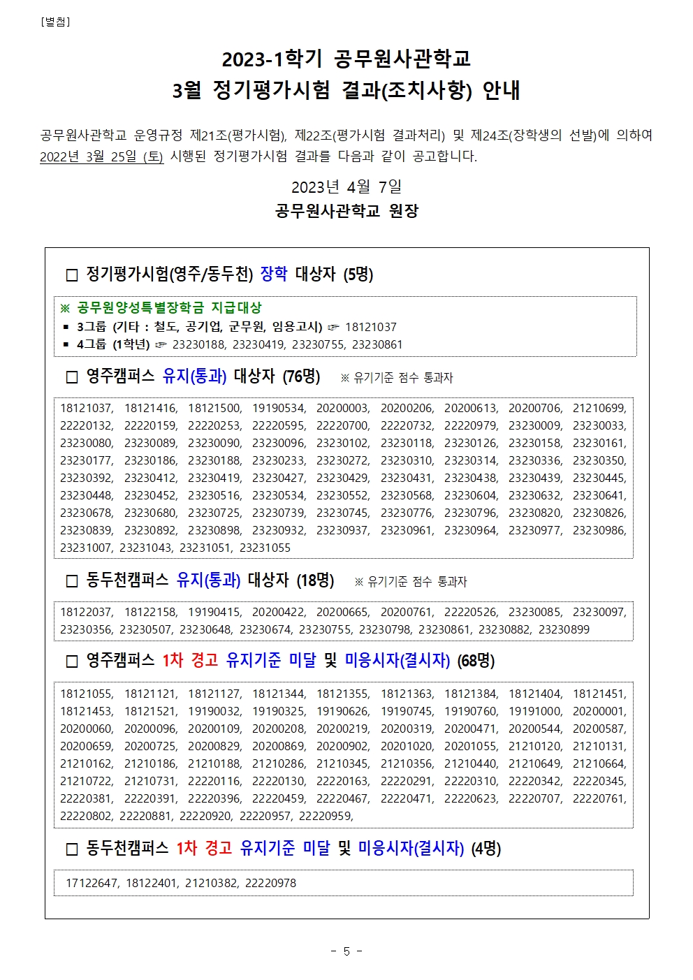 2023학년도 공무원사관학교 3월 정기평가시험 결과1