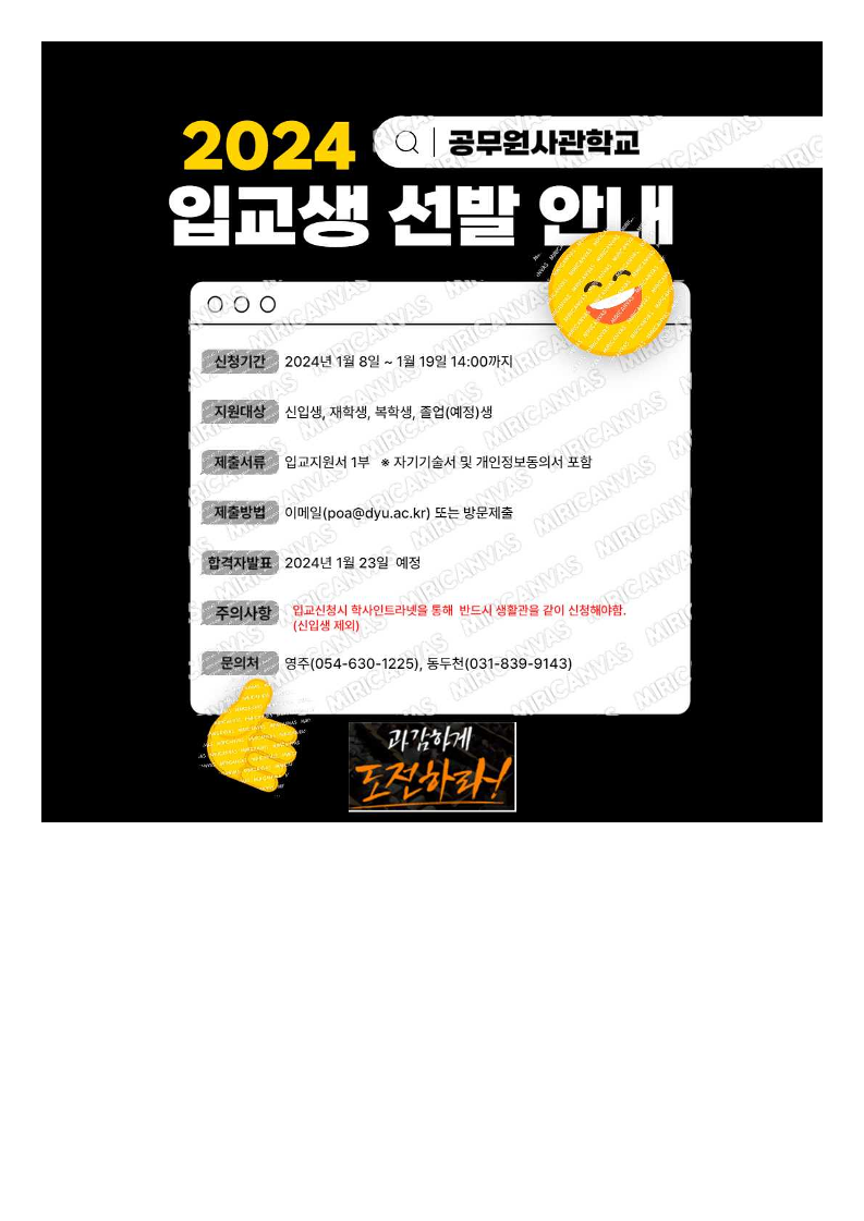 연락처 : 영주 ☎ 054)630-1225, 동두천 ☎ 031)839-9040   위치 : (영주) 경북 영주시 풍기읍 동양대로 145 공무원사관학교(H동), (동두천) 경기도 동두천시 평화로 2741 학생지원센터