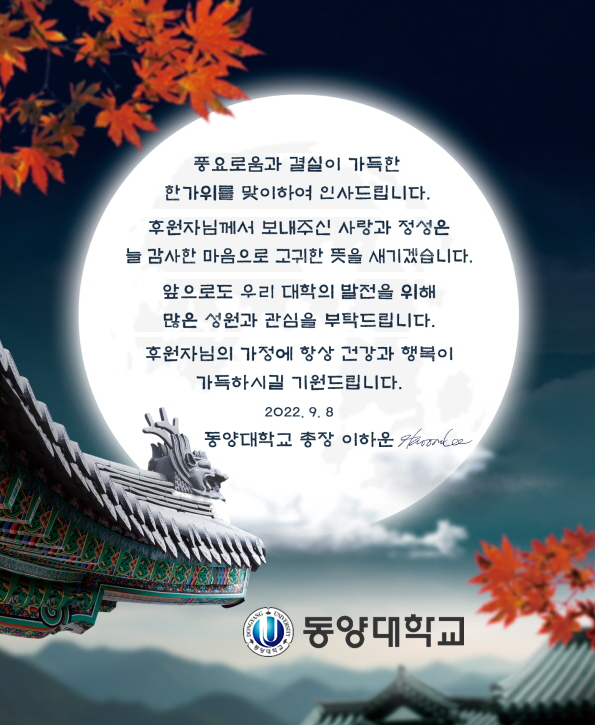 추석 연휴 인사말 (동양대학교 총장 이하운)