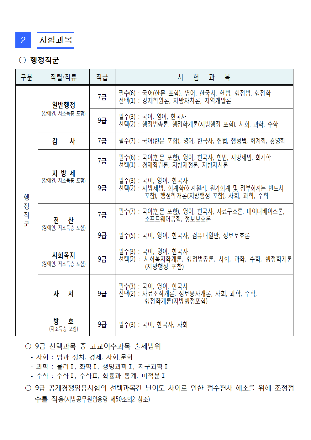서울시 시험과목001
