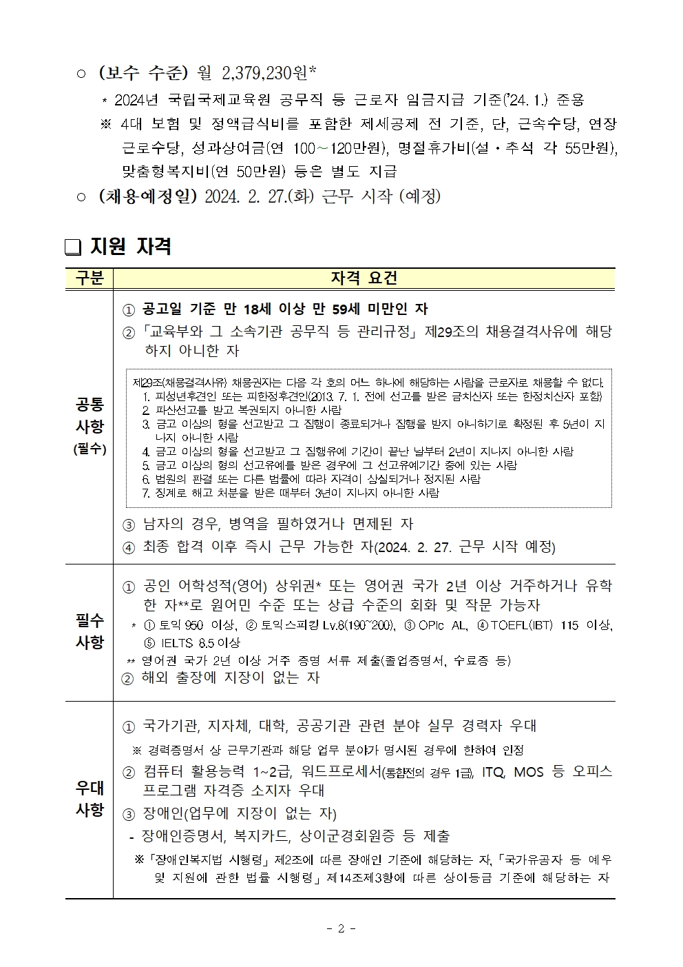 2024년 제1차 공무직 근로자(행정원_가호) 채용 재공고문002