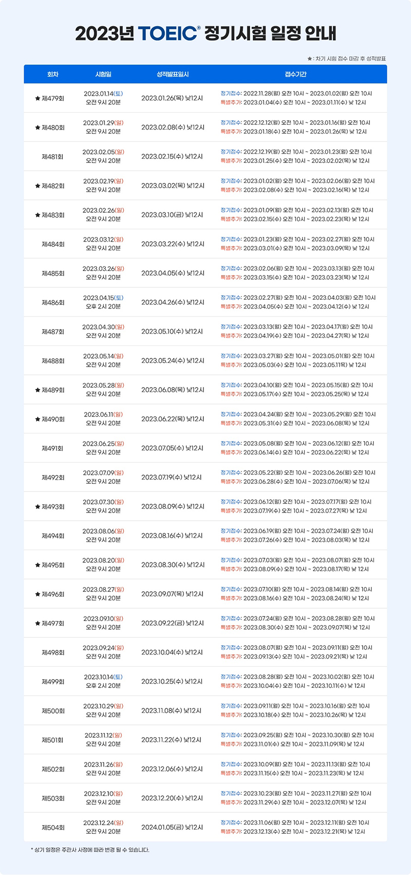 정기토익 시험일정