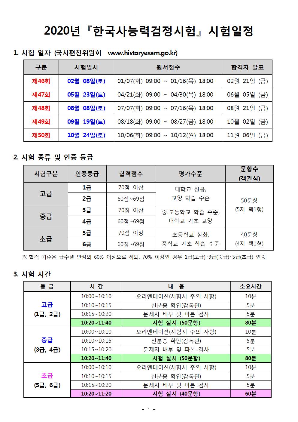 2. 2020년 한국사능력검정 시험일정001
