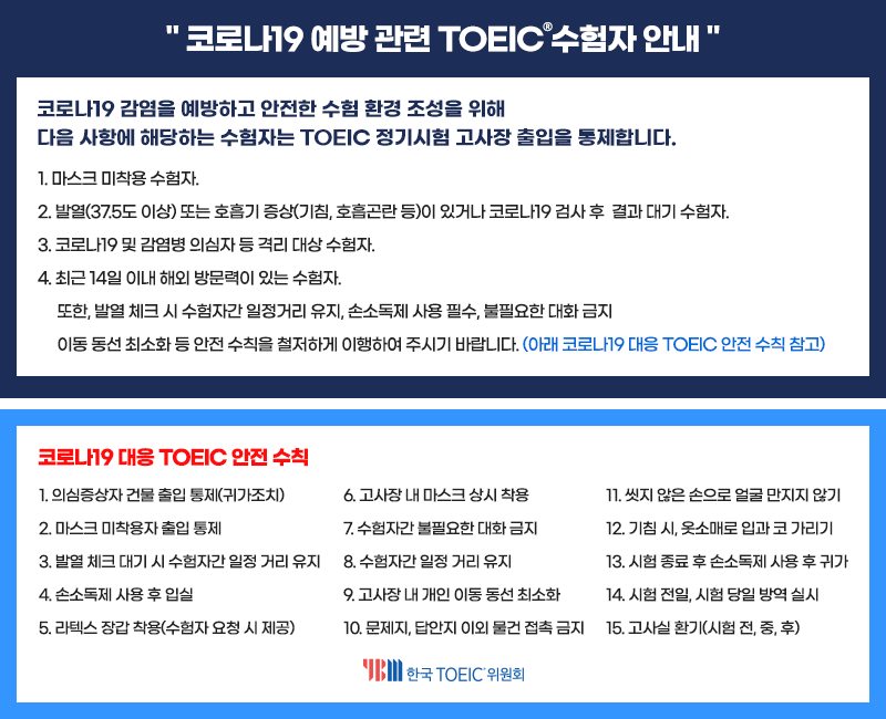 2020 1027 _ 코로나19 예방관련 토익 안전수칙 (한국토익위원회)