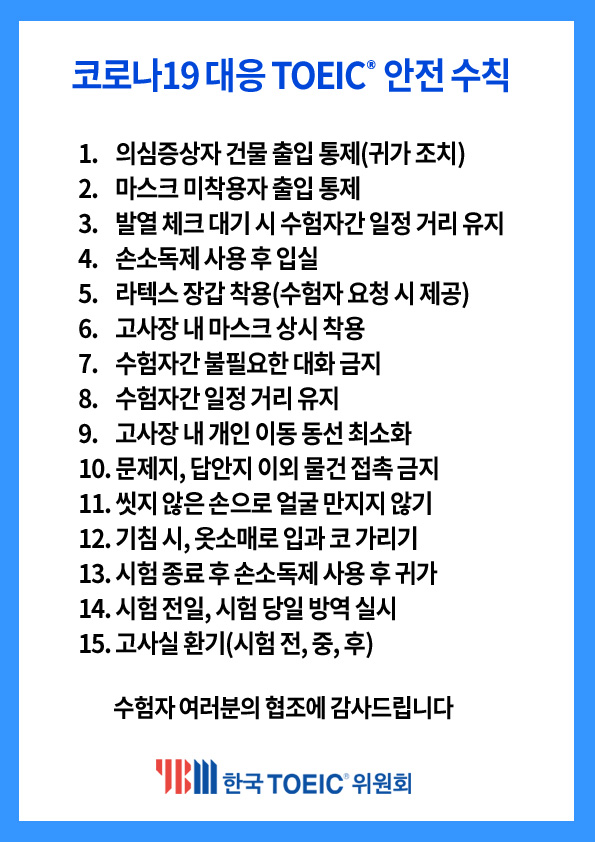 2021년 정기토익 코로나19 대응 TOEIC 안전 수칙