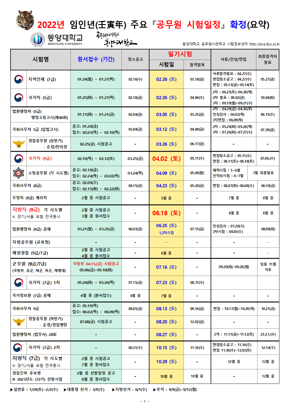 (2022년) 주요 공무원 시험 일정(A3 1장 요약)001