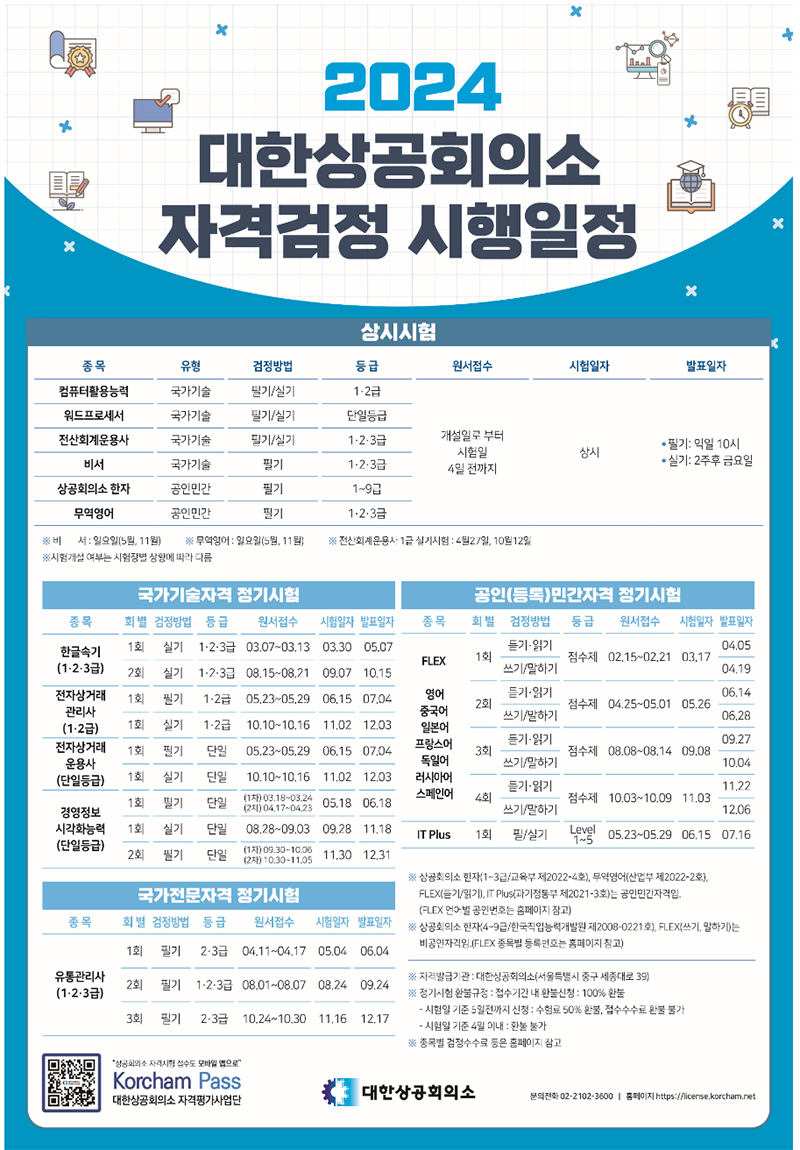 2024년 대한상공회의소 자격검정 시행일정 안내